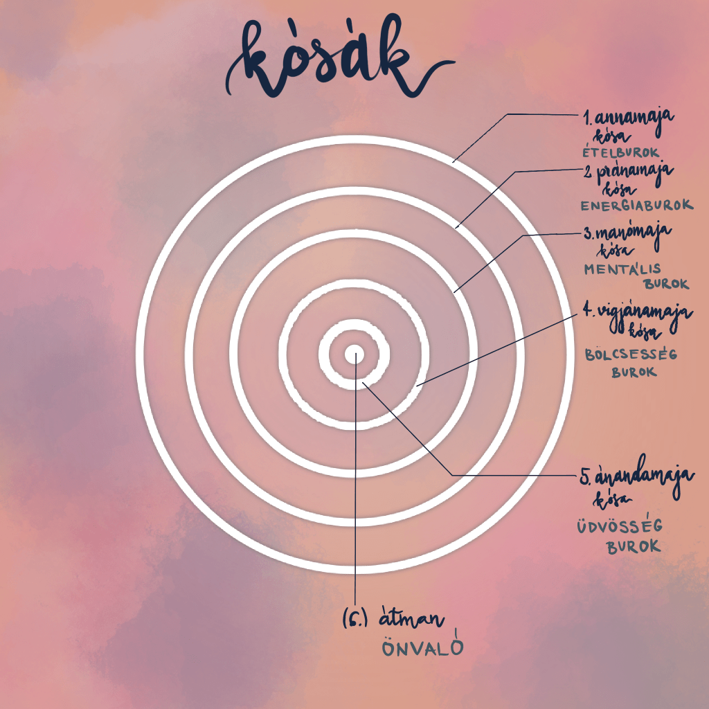 Patañjali Astanga-jóga lépcsőfokai is megfeleltethetőek az úgynevezett burkoknak vagy kósáknak. Mik ezek? Röviden: a jógapszichológiában az a központi elképzelés, hogy több különböző létezési (és tudat-) szint van és mindegyik képes megfigyelni és irányítani az alatta lévőt.